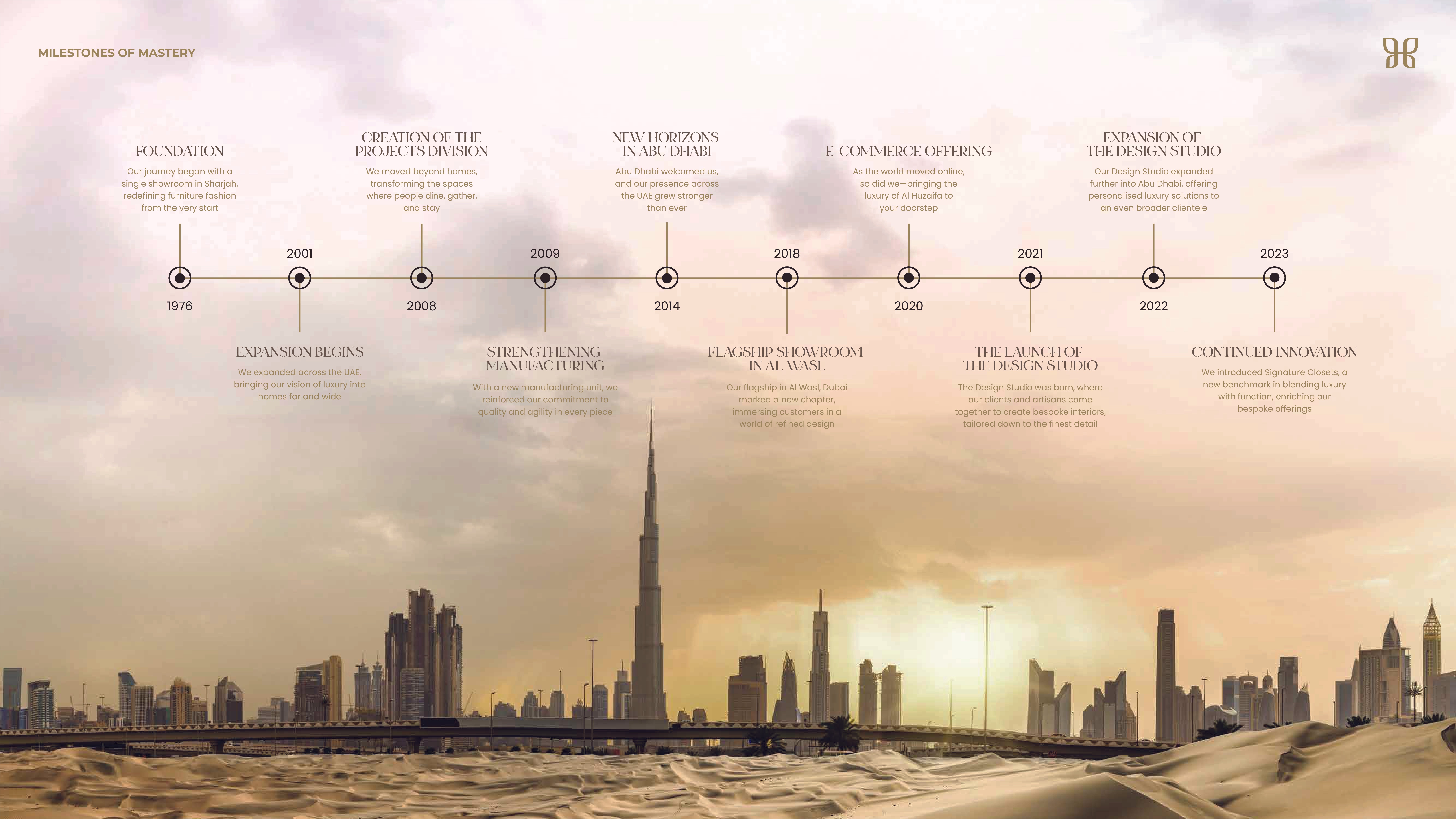 Al Huzaifa is a long-standing luxury furniture brand in the UAE, operating at a high-end, design-forward level. I was brought in to strengthen and systematise their existing identity without altering the core logo.